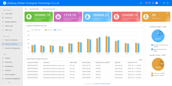 3.On platform you can check the power consumption tendency chart, predicting the trend and reasonable scheduling. Also monthly power consumption, received bills, unpaid bills’ fee and other statistics data can be checked and generating the sheets which are convenient for financial reconciliation.